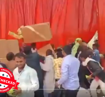 This video shows a ruckus during a mass wedding in Uttar Pradesh’s Hamirpur district. A video of people creating a ruckus by throwing cartons and looting some packets is going viral on social media with a claim that it shows RSS members attacking a Catholic school in Mancherial, Telangana. The users who share the video […]