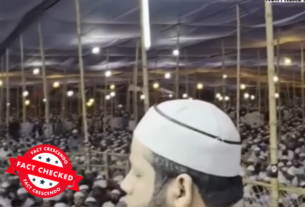 This video shows a religious congregation held in Bangladesh, not Assam. A video of a massive gathering of Muslims chanting “Allah Allah” is going viral on social media, with claims that it is from Assam and that the crowd had assembled to pray for the defeat of Prime Minister Modi and Assam Chief Minister Himanta […]