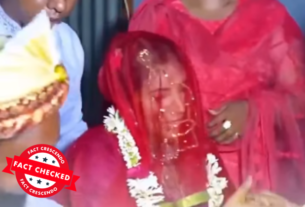 This video does not show a real incident. It is a scripted video created by the social media page Rauf TV. A video is going viral on social media, claiming that a newly married Hindu woman was kidnapped in Pakistan. The footage depicts a woman wearing a garland being forcibly taken from a decorated car […]