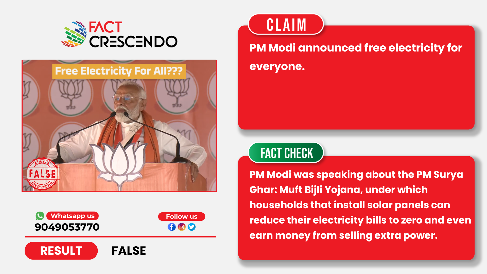 Fact Crescendo found the viral claim to be false. The clip posted on social media is clipped and edited to remove the original context of Modi’s statement about PM Surya Ghar: Muft Bijli Yojana.