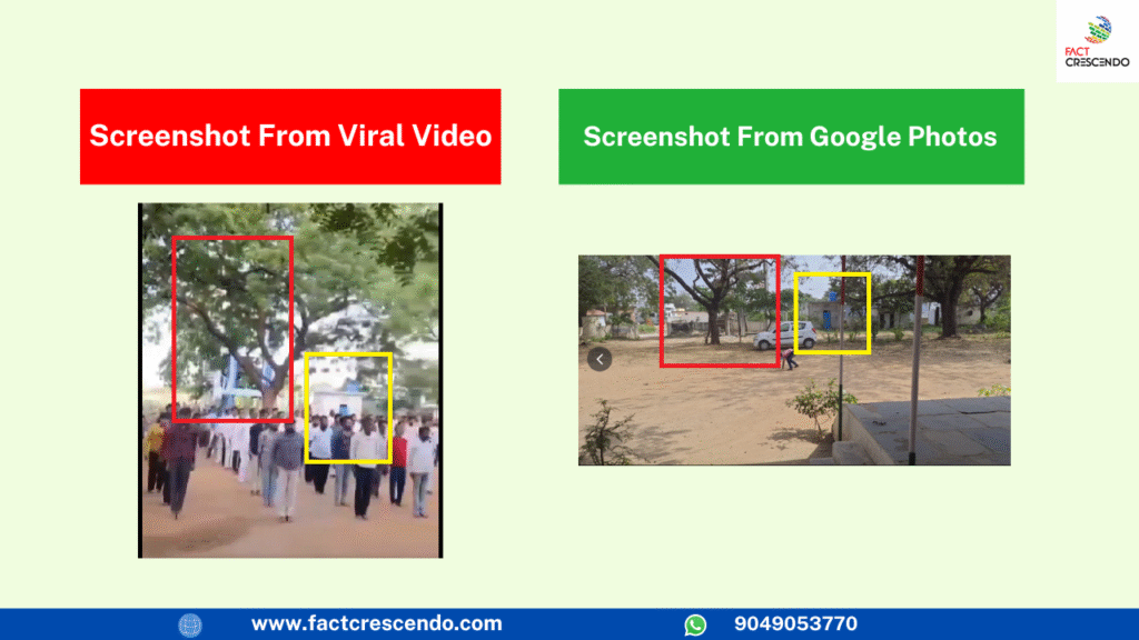 We searched for the village Masayipet, Yadadri, Telangana on Google Maps and found a video that matches the location of the viral video. According to Google Maps, the location is Masayipet Zila Parishad School. A comparison between the screenshots from the viral video and the Google Maps video can be seen below.
