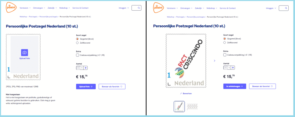 Next, we checked the official website of the Netherlands’ postal service, known as PostNL, to see if it carried any stamps for the RSS, and we could not find any relevant results. But we came across a section that allows users to create custom stamps with any image of their choice.