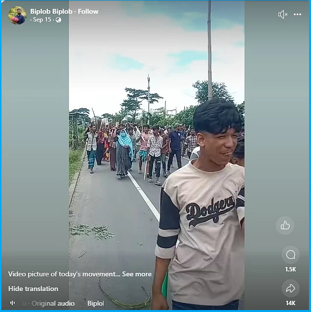 Moving forward, we also found this video on Facebook. This video was uploaded by a Bangladeshi user on 15 September, 2025. According to the caption of the post, the footage is from a protest in Faridpur, Bangladesh.