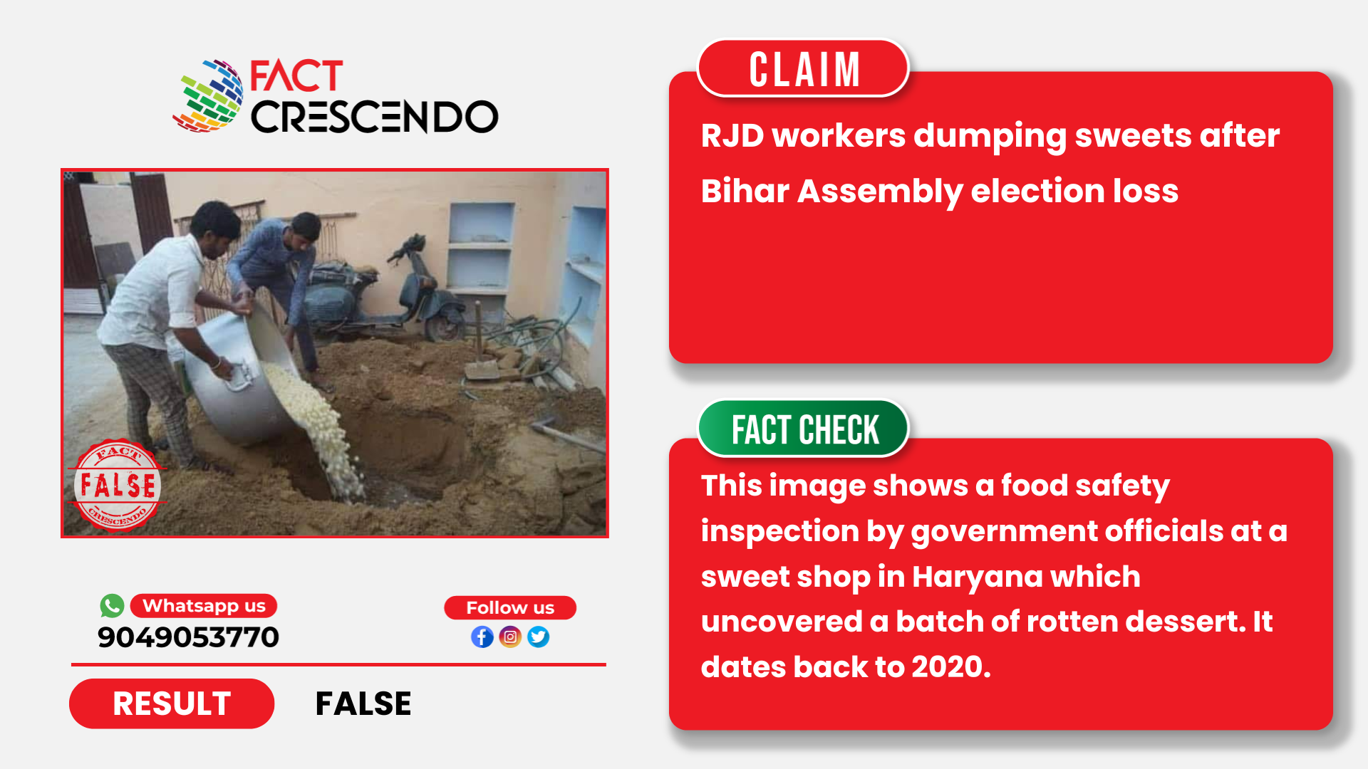 A report by Dainik Bhaskar also shows the sweet being dumped into the ground in Sirsa, Haryana. So, it is clear that the image is not from Bihar and has no connection to the RJD or the Bihar elections.
