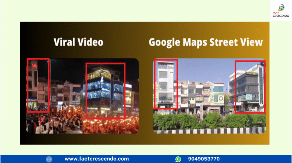 Upon further search, we came across a news report from NDTV. According to this news, Naresh Meena has been on a hunger strike for 14 days demanding compensation of Rs 50 lakh each to the relatives of the children who died in the roof collapse of a school in Jhalawar, Rajasthan in July. A torch rally was organized in Jaipur under the leadership of his son in support of Naresh Meena. The route of this rally was reported in the news as Gujjar ki Thadi from Triveni Nagar Chouraha in Jaipur. When we checked this route on Google Maps, we found the buildings seen in the video. We can see the Google Street View of the place seen in the video below.