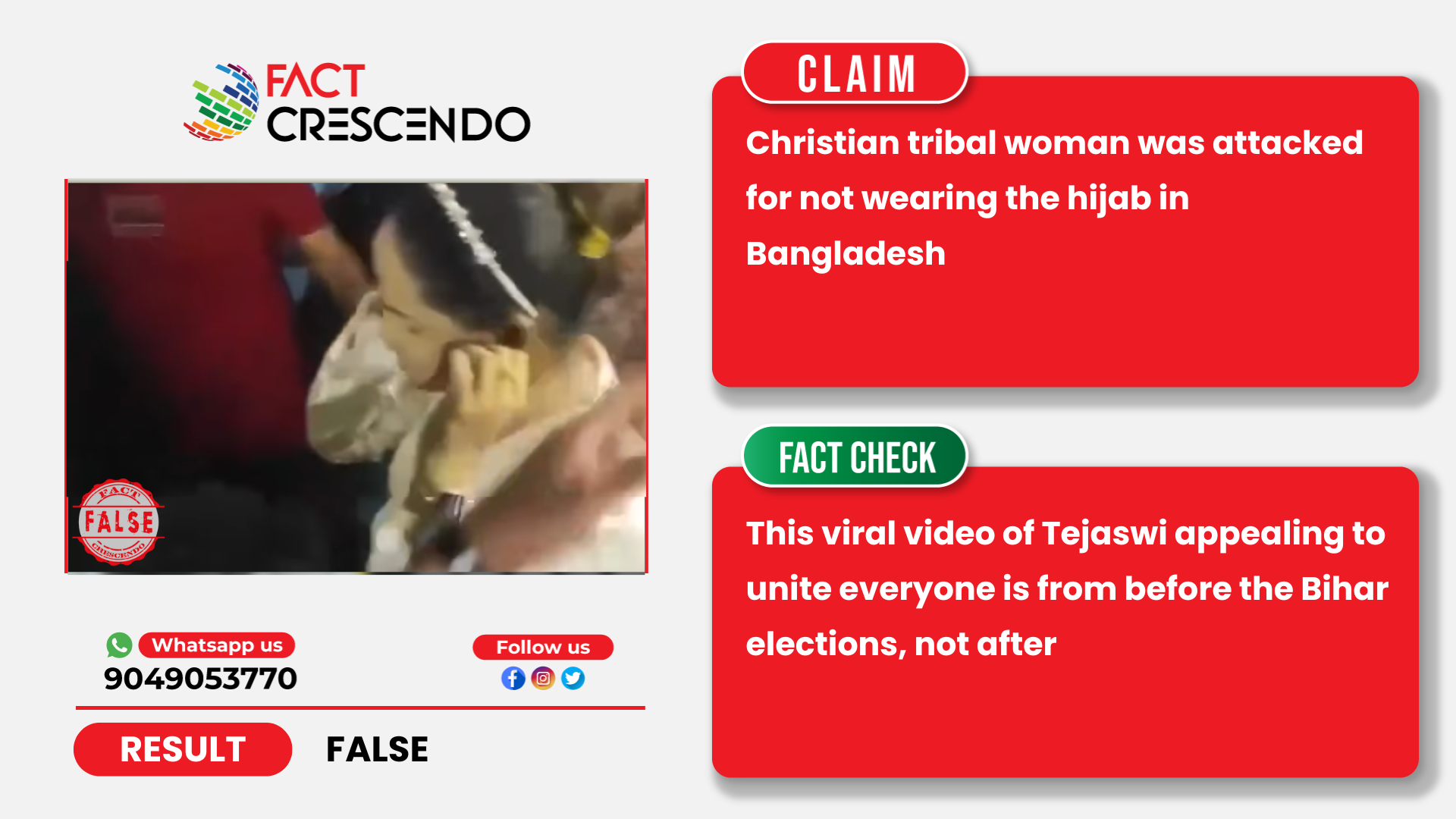 So, the viral video claiming a Christian tribal woman was attacked for not wearing the hijab in Bangladesh is false.