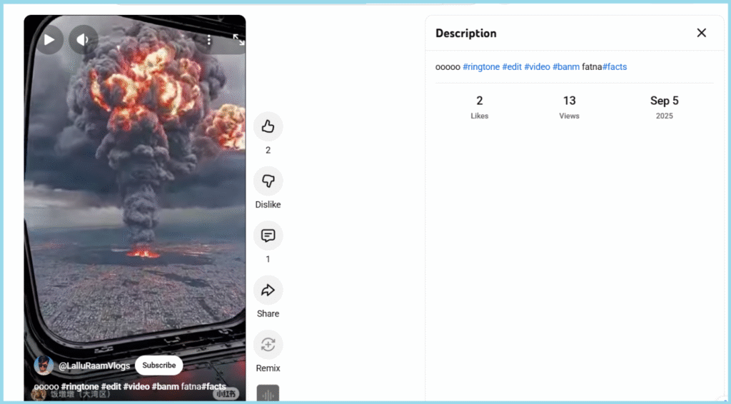 We started our investigation by taking screenshots from the viral video and conducting a reverse image search. This led us to a YouTube channel, where the viral video was uploaded on September 5, 2025.