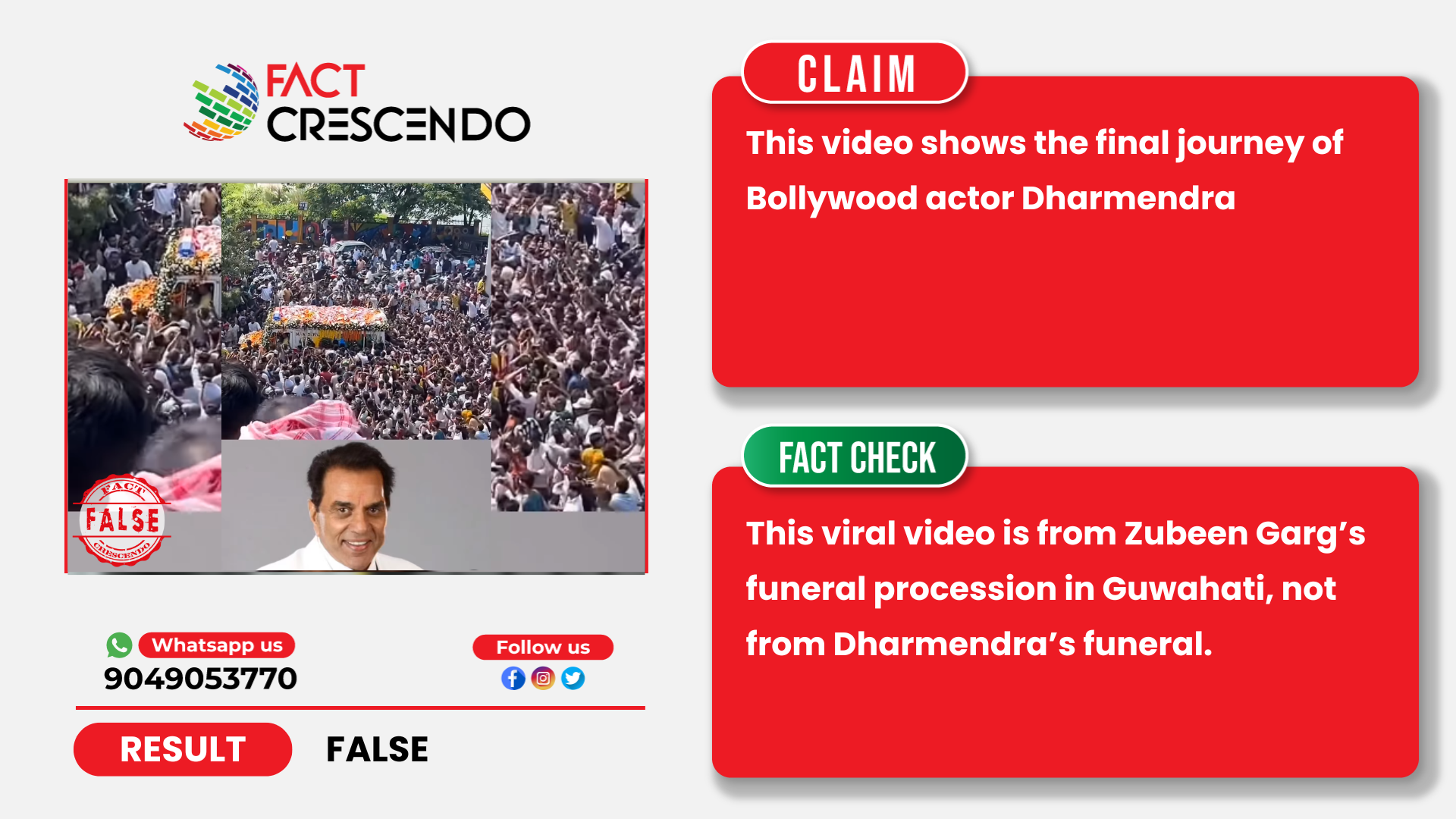 Conclusion- Fact Crescendo found the claim made along with the viral video to be False. This viral video is from Zubeen Garg’s funeral procession in Guwahati, not from Dharmendra’s funeral.