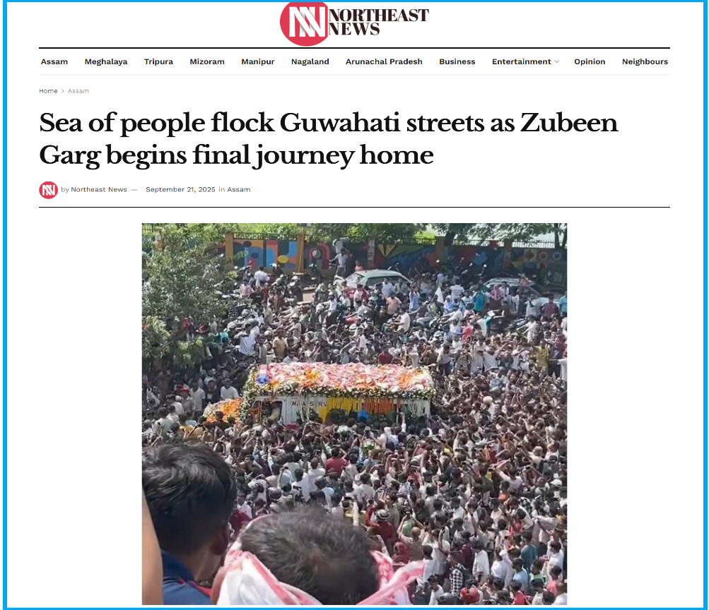 We started our investigation with a reverse image search on Google and the results led us to a report by the Northeast news published on 21 September 2025 carrying the screenshot of the video under the caption, “Sea of people flock Guwahati streets as Zubeen Garg begins final journey home”. This indicates that the viral video shows the last journey of the renowned singer Zubeen Garg, in Guwahati, Assam.