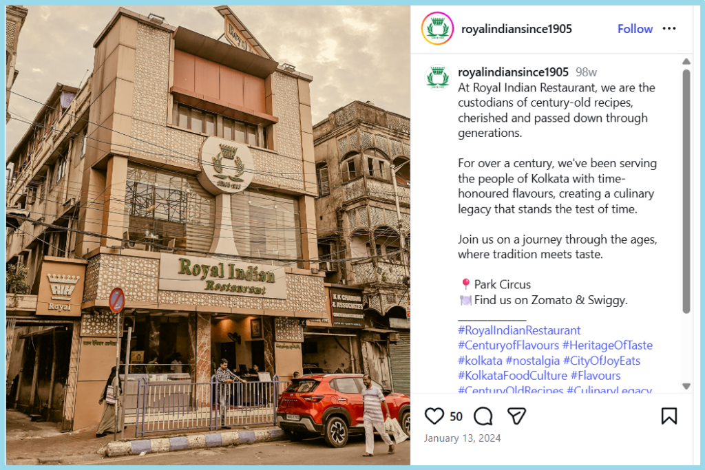 Moving forward, we took some screenshots from the viral video and conducted a relevant keyword search. This led us to an Instagram post where we found the photo of the restaurant “Royal Indian Restaurant” that is visible in the viral video.