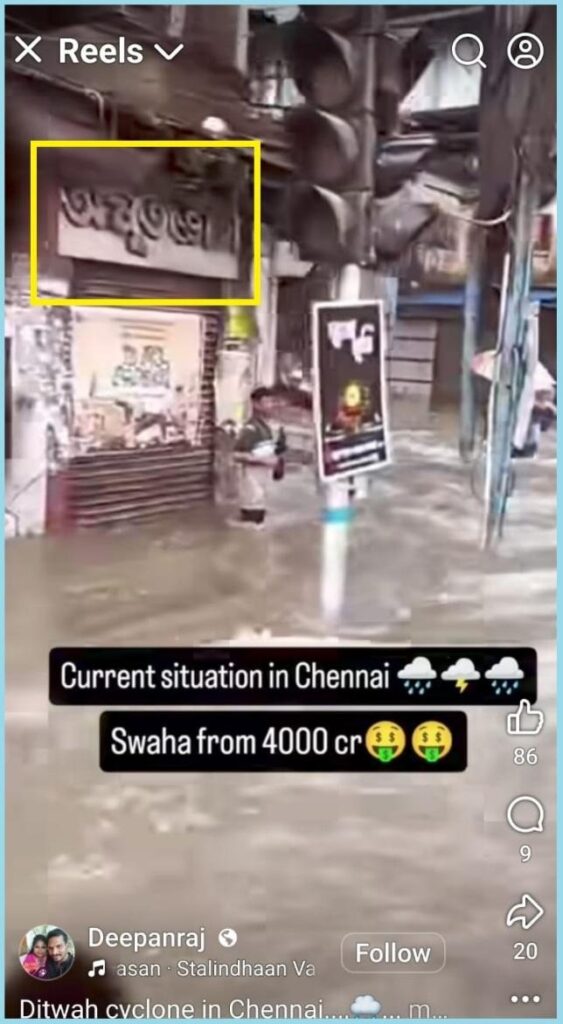 A video of a flooded street went viral on social media claiming it to be from Chennai as a result of Cyclone Ditwah.