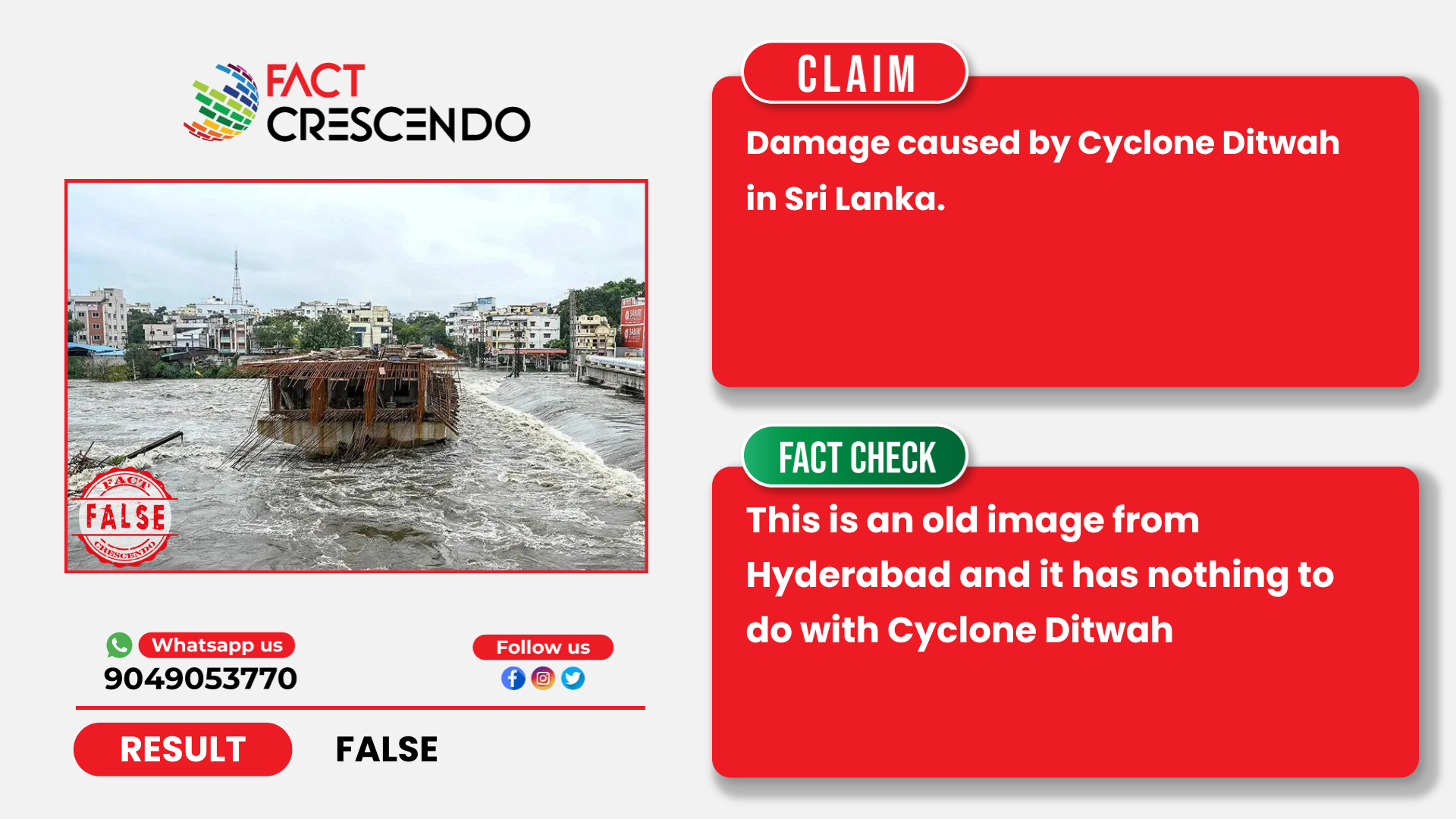 The viral image is old and it is from Hyderabad, India. It has no link with the Cyclone Ditwah in Sri Lanka.