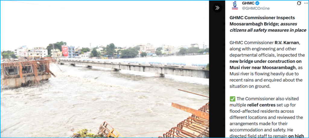 Moving forward, we also found a post by the Greater Hyderabad Municipal Corporation (GHMC) dated 27 September, 2025. It carried a picture from the same location as seen in the viral image.