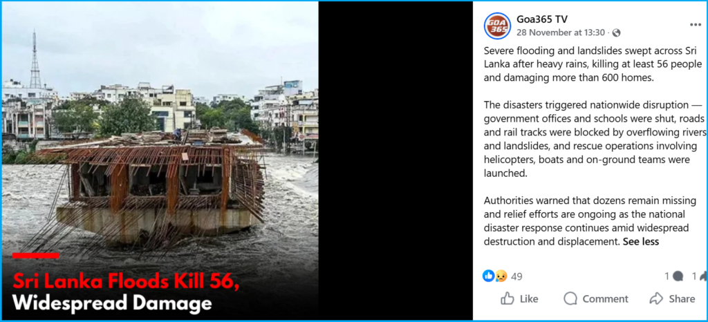 Against this backdrop, an image of a submerged bridge is going viral with a claim that it shows the devastation in Sri Lanka as Cyclone Ditwah wreaked havoc in the country, causing severe flooding.