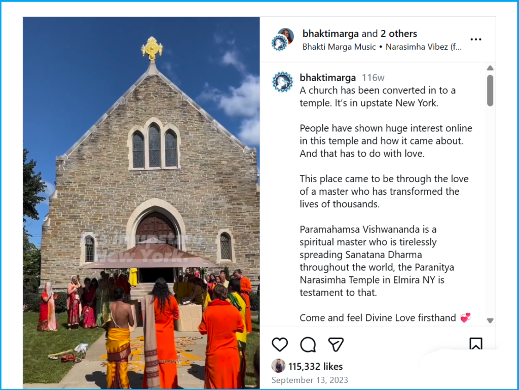 The description states, “A church has been converted in to a temple. It’s in upstate New York. People have shown huge interest online in this temple and how it came about. And that has to do with love. This place came to be through the love of a master who has transformed the lives of thousands”.