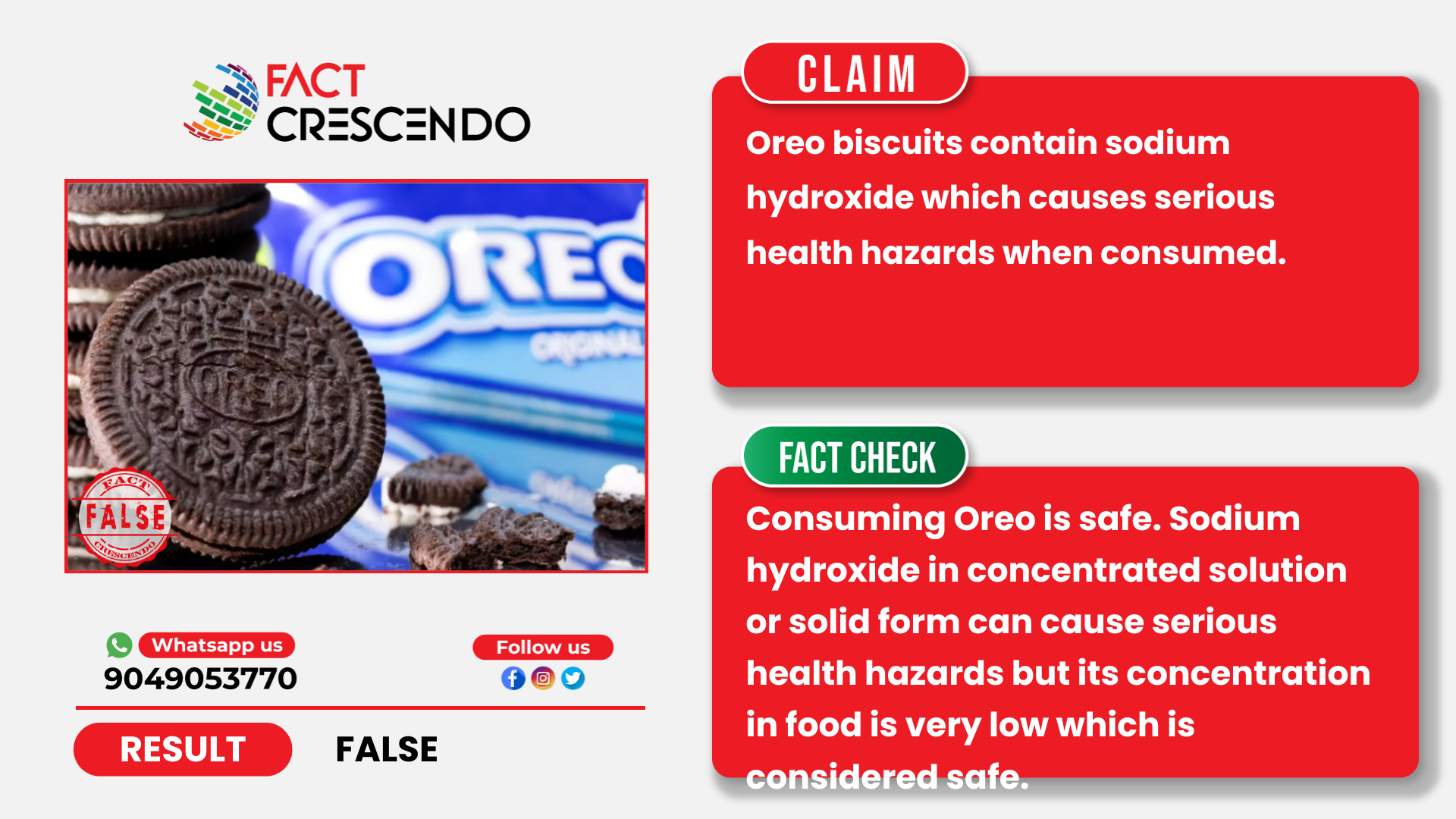 But recently, social media users are raising their concern on the safety of Oreo. The claim suggests that Oreo contains Sodium Hydroxide, an ingredient which is also present in paints and helps in degreasing machinery. When it is slightly overused, it damages human tissues and causes inflammation to the esophagus and stomach lining.
