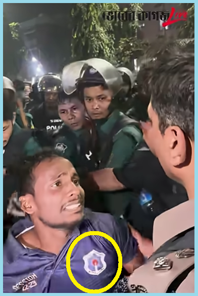 We noticed the logo of Dhaka College on the jersey worn by the man and the name MOMIN printed on it. The person in the video says in Bengali that he is a student of Dhaka College and he has nothing to do with any protest.