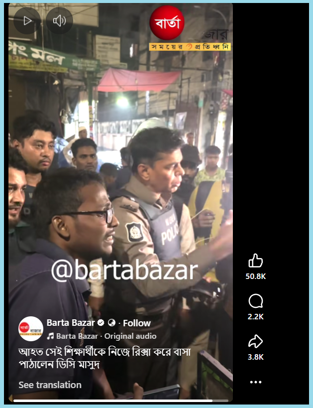 Another video shows DC Masud Alam helping the injured student find a rickshaw.