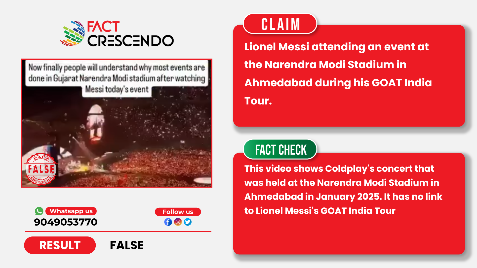 The viral video, purportedly of Messi’s Gujarat event, is actually from a Coldplay concert in Ahmedabad in January 2025.
