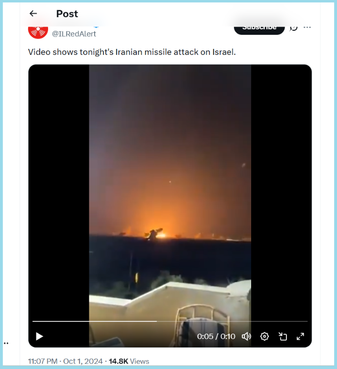 According to the caption, the video shows an Iranian attack on Israel on October 1, 2024.