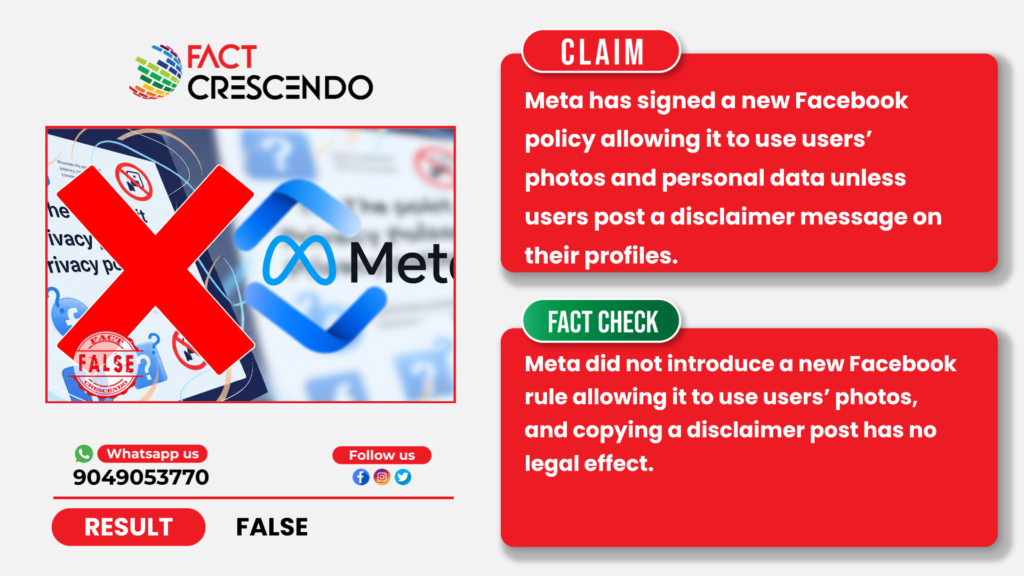 Fact Crescendo investigated these claims to determine whether Meta had introduced any such policy and whether posting the message had any legal effect.