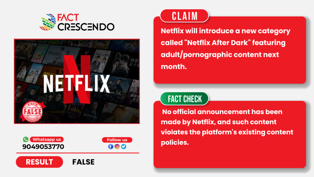 A claim circulating on social media states that Netflix will add adult content next month under a new category called “Netflix After Dark.” Given Netflix’s global reach and strict content policies, this claim warrants verification. However, we found this claim to be false.