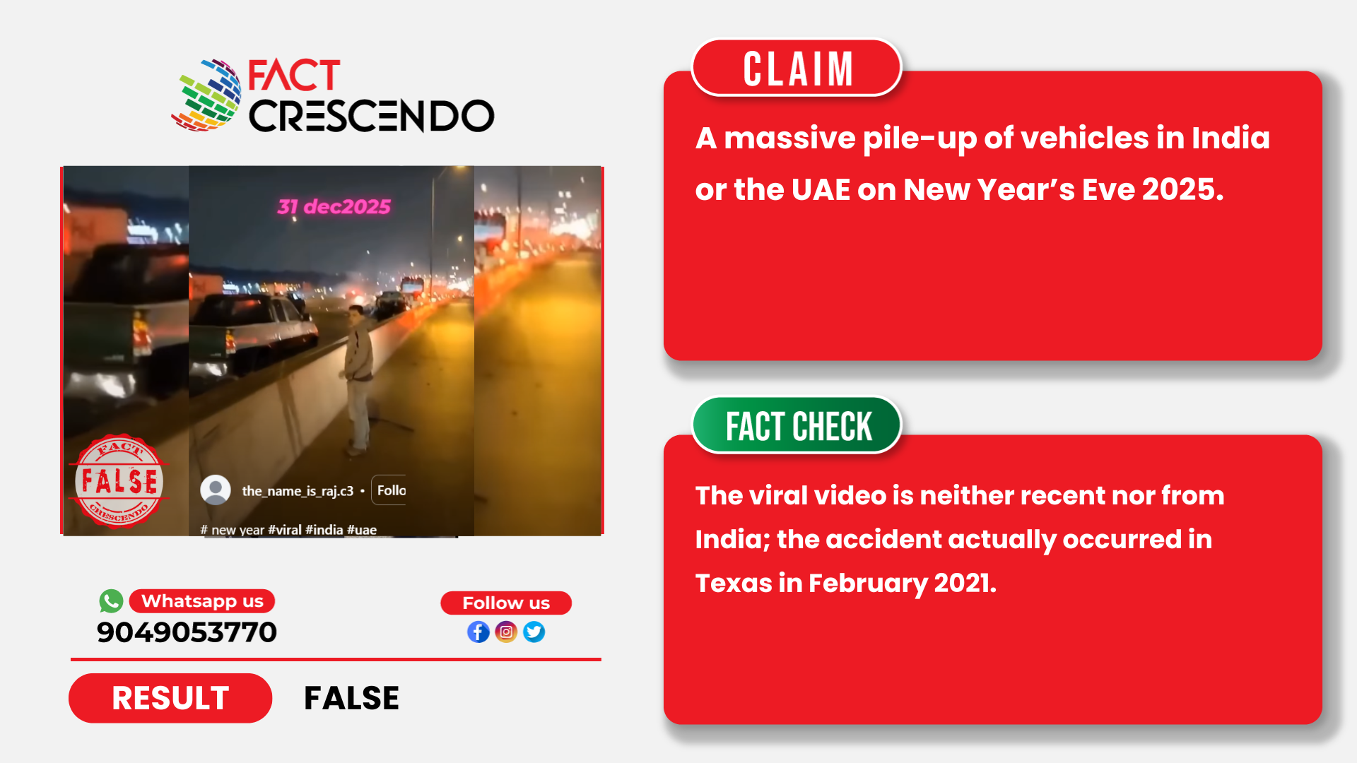 So, all these evidences confirm that the viral video is old and not from India. This accident happened in Texas in February 2021.