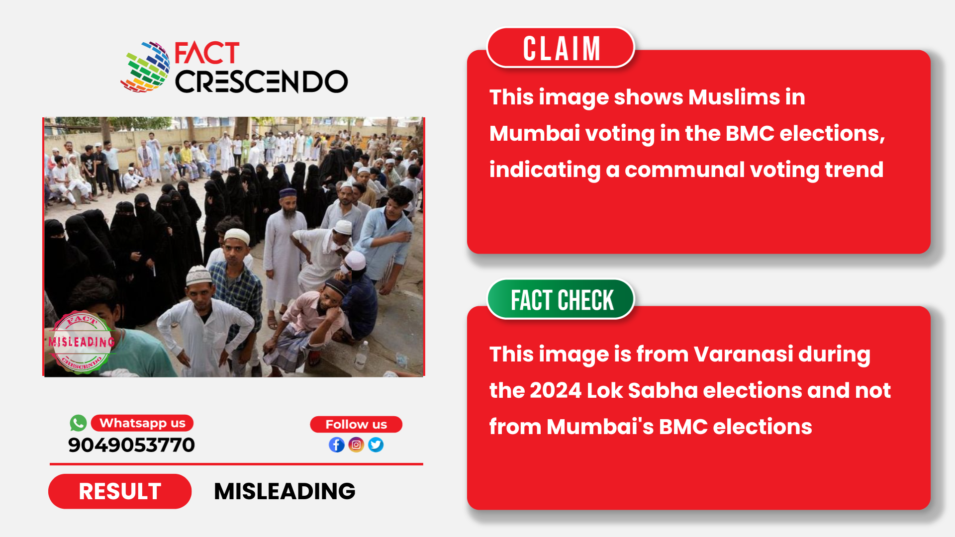 Fact Crescendo found the claim made along with the viral image to be Misleading. This image is from Varanasi during the 2024 Lok Sabha elections and not from Mumbai’s BMC elections.