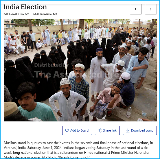 Next, we checked the image on the AP website and found it as a part of a series of photographs listed under the Varanasi voting India 2024 category by AP.