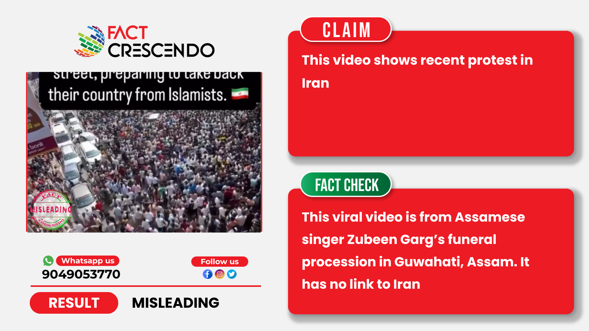 Conclusion- Fact Crescendo found the claim made along with the viral video to be Misleading. This viral video is from Assamese singer Zubeen Garg’s funeral procession in Guwahati, Assam. It has no link to Iran.