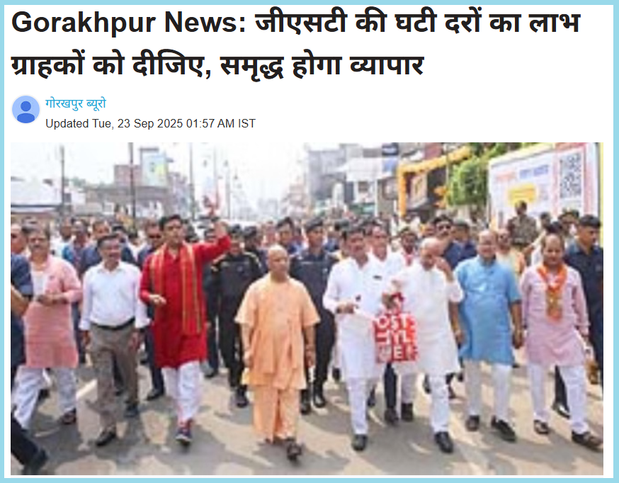 According to the report, “…Chief Minister Yogi Adityanath himself started the first phase of GST Reform Awareness Campaign by doing public relations among traders and customers. The CM told the traders to give the benefit of reduced GST rates to the customers. This will make the business more prosperous…”