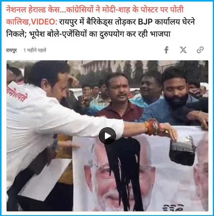 Using this hint, we ran a keyword search on Google and the results led us to a news report by Dainik Bhaskar. It states that the Congress party organised a protest in Raipur, Chhattisgarh, in response to the National Herald Case.