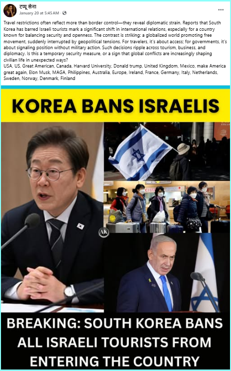 Multiple posts on social media are claiming that South Korea had taken a drastic step by banning Israeli tourists from entering the country. This marks a significant shift in international relations.