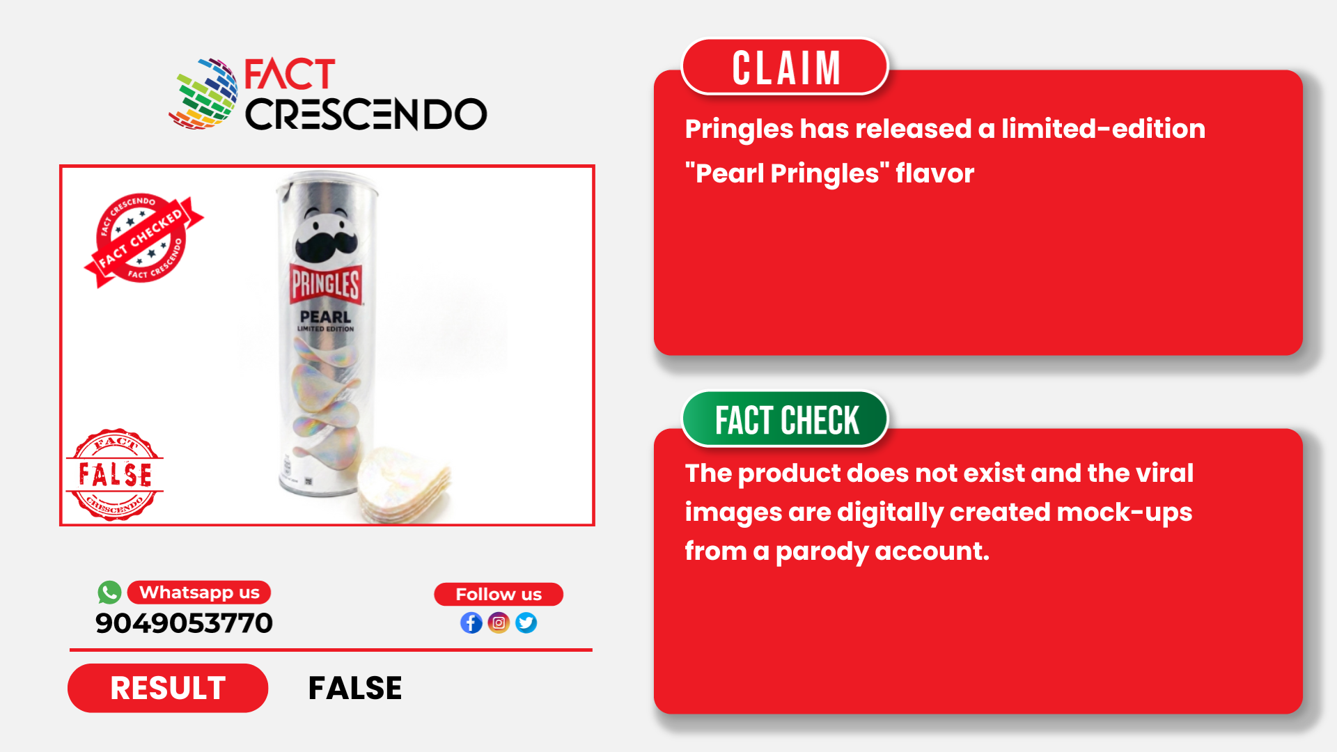 Posts circulating on Facebook, Instagram, TikTok, and other social media platforms claim that Pringles has released a rare or limited-edition flavor called “Pearl Pringles.” The posts often show a glossy, pearl-white Pringles can and crisps, framed as an exclusive or hard-to-find product. Because Pringles frequently launches novelty and limited flavors, the claim has appeared plausible to many users. However, our review shows that this claim is false.