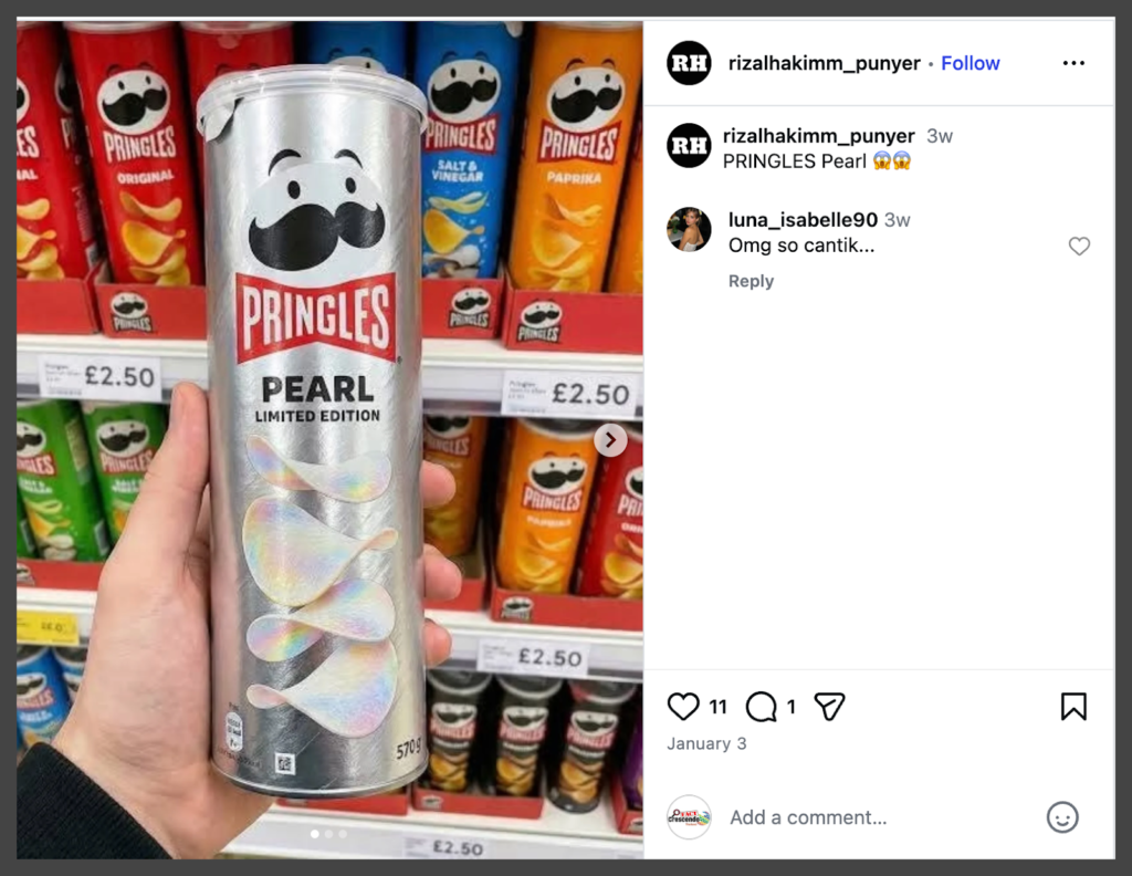 Reverse image searches of the viral “Pearl Pringles” visuals trace them back to the Instagram account uksnackattack, which frequently posts fictional snack concepts. The page describes such content as “snackfishing,” a practice of inventing fake snack concepts to generate shares and comments. The original post indicates that the concept was created as a mock-up rather than representing a real or upcoming product release.