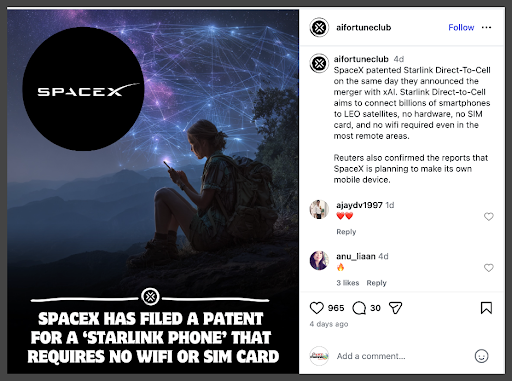 The claim that SpaceX is developing a “Starlink phone” or mobile device that could rival smartphones is misleading and lacks substantiation. While Reuters reported on internal discussions about a potential Starlink-connected device, CEO Elon Musk has explicitly denied that SpaceX is currently developing a phone.