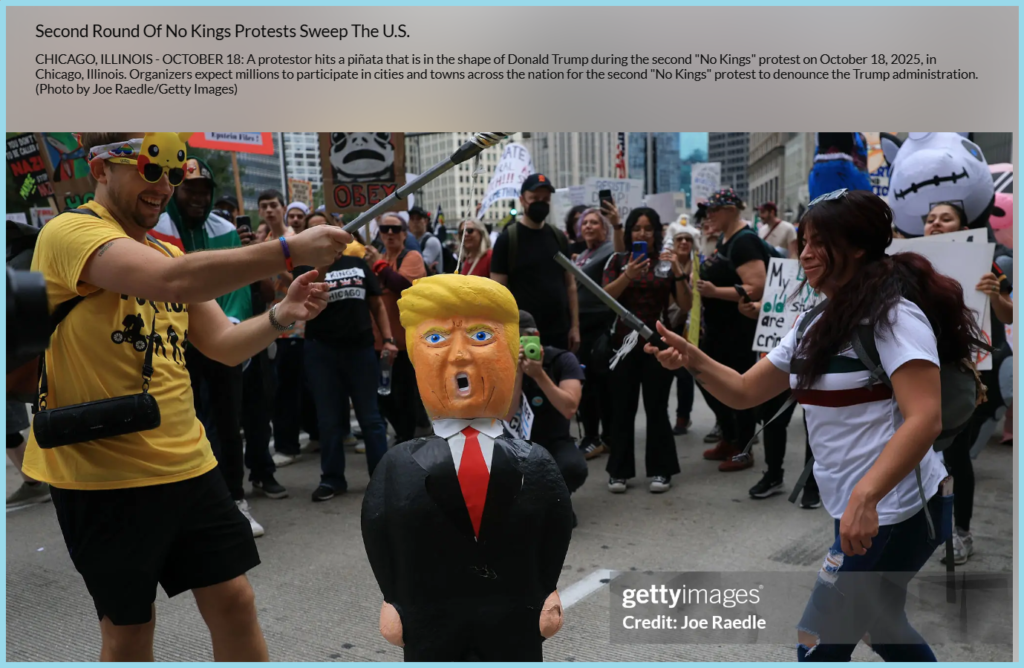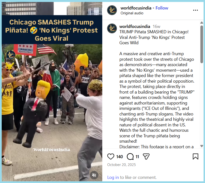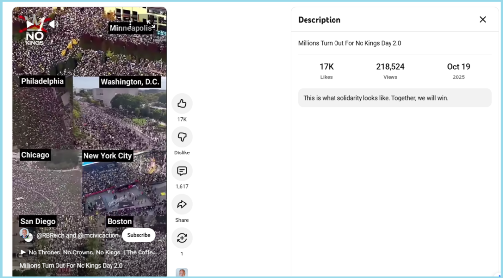 According to the caption, the video shows the “No Kings Protest” in Chicago in October 2025.