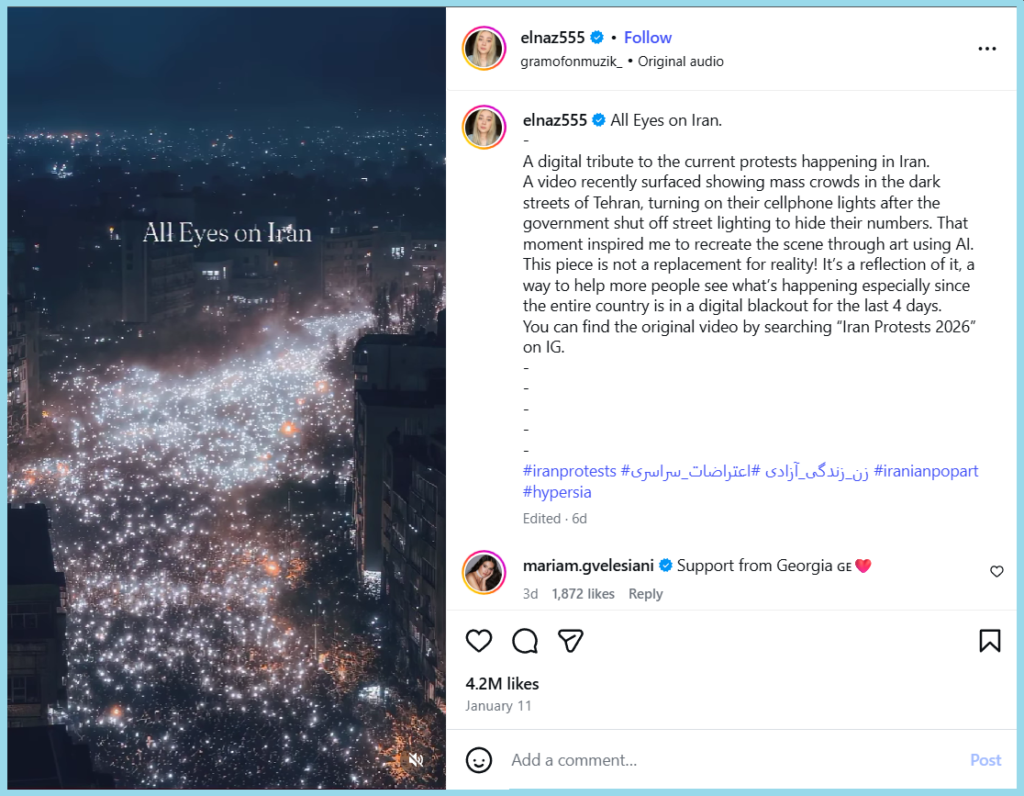 The caption of the post read, “All Eyes on Iran.