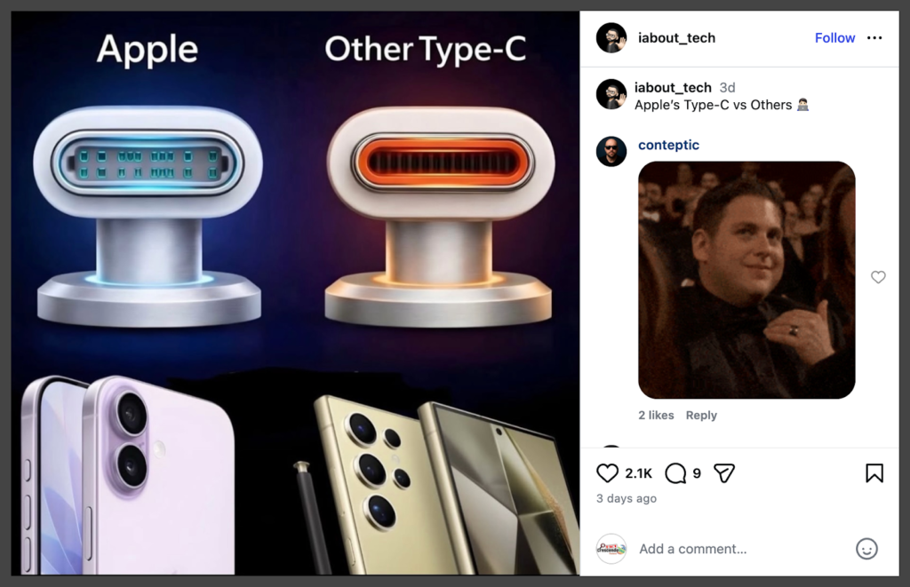 The claim typically appears in the form of comparison graphics with captions stating that “Apple Type-C is not the same as Android Type-C,” often accompanied by diagrams suggesting different internal pin layouts.