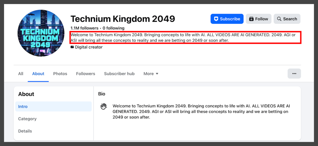 As part of our verification process, we conducted a reverse image search on key frames from the viral video circulating alongside the “Tesla hover bike” claim. The search results traced the footage back to a Facebook page called Technium Kingdom 2049.