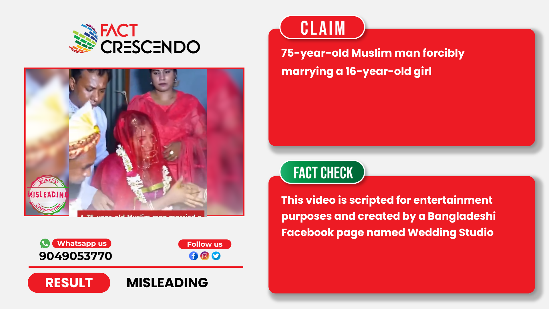 So, the viral video showing an elderly Muslim man forcibly marrying a minor girl is scripted and does not depict a real incident.