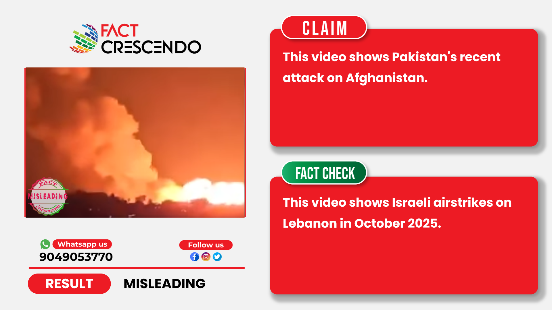 Fact crescendo found that the claim made along with the viral video to be misleading. This video shows Israeli airstrikes on Lebanon in October 2025.