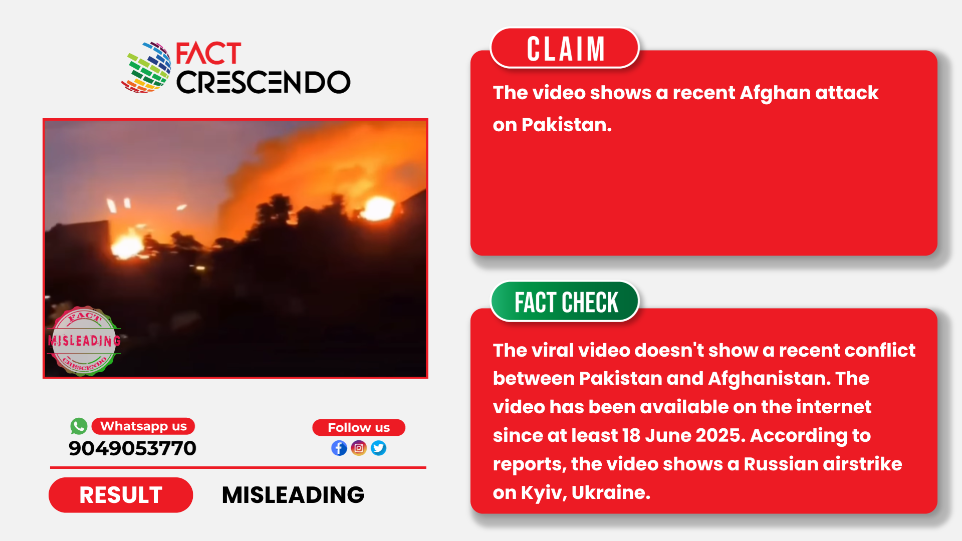 From our investigation, we can say that the claim is misleading. The viral video doesn’t show a recent conflict between Pakistan and Afghanistan. The video has been available on the internet since at least 18 June 2025. According to reports, the video shows a Russian airstrike on Kyiv, Ukraine.