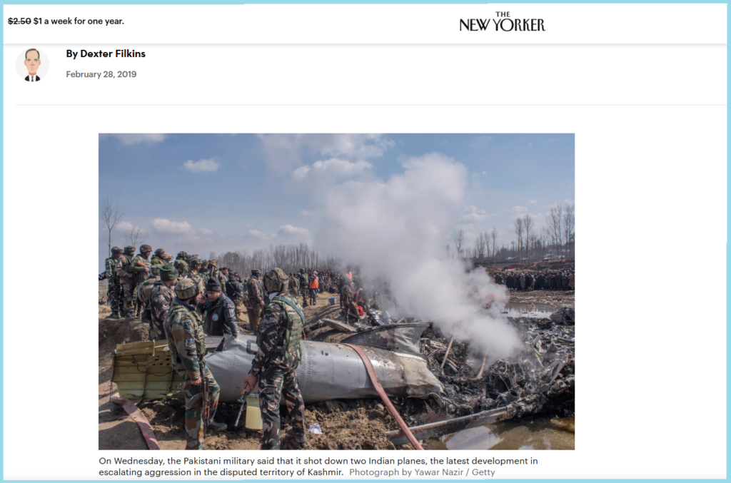 The first and second images show several army men near the burnt debris, which seemed to be of an aircraft. A reverse image search led us to a report published on The New Yorker on February 28, 2019, that contained an image similar to the second viral image. According to the report, it shows the wreckage of the Indian planes shot down by the Pakistani military.