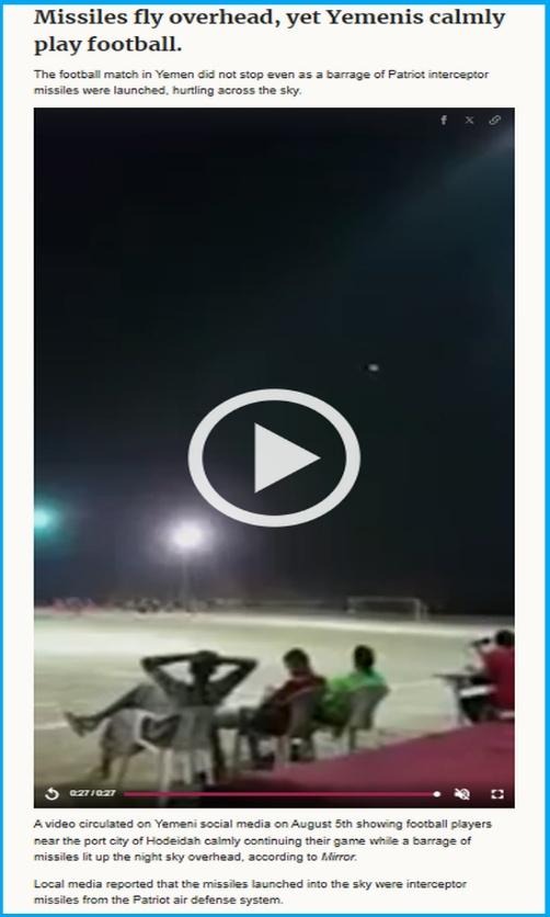 Upon further search, we came across a news report published by a Vietnam-based news portal around the same time in August 2018, which also carried the same video. That report states that the video was from Yemen, showing football players near the port city of Hodeidah calmly continuing their game while missiles lit up the night sky overhead.