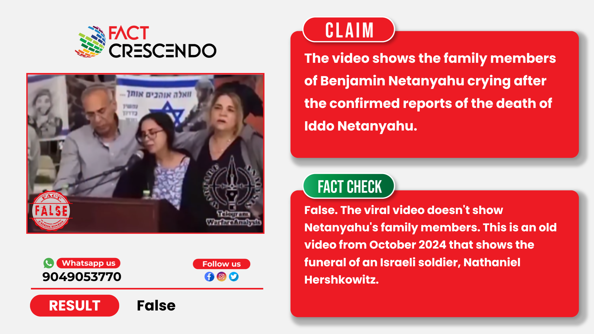 From our investigation, we can say that the claim is false. The viral video doesn’t show Netanyahu’s family members. This is an old video from October 2024 that shows the funeral of an Israeli soldier, Nathaniel Hershkowitz.