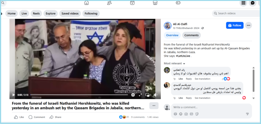 The translation of the caption of the video read, “From the funeral of the Israeli Nathaniel Hershkovitz