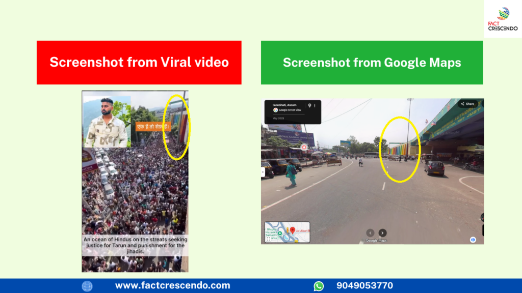 We geolocated the place in the viral video. A comparison between the screenshots from the viral video and the Google Maps images is shown below.