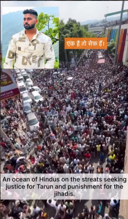 On March 4, 2026, 26-year-old Tarun Kumar was killed in Delhi’s Uttam Nagar after a minor Holi splash turned violent. 16 people have been arrested in connection with Tarun’s death. Protests broke out in that area and the protesters blocked the nearby roads. Against this backdrop, a video of a massive crowd went viral on social media. Sharing the video on Instagram, a user claimed that this shows the Hindus on the streets seeking justice for Tarun.