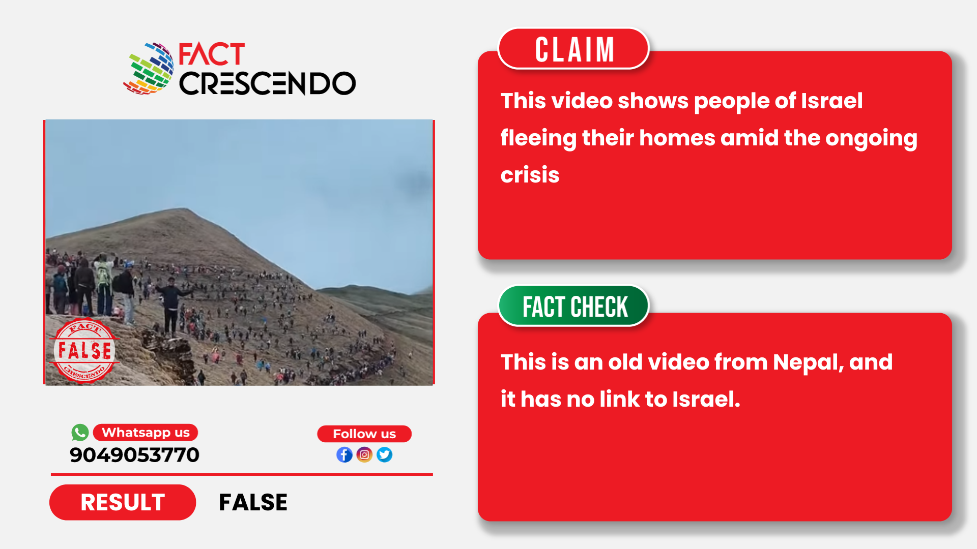 The war has resulted in significant displacement across the region. Millions of people in Israel have been forced to flee their homes due to escalating hostilities and evacuation orders. But based on all this evidence, we can understand that this video is from Nepal and it has no link to Israel.